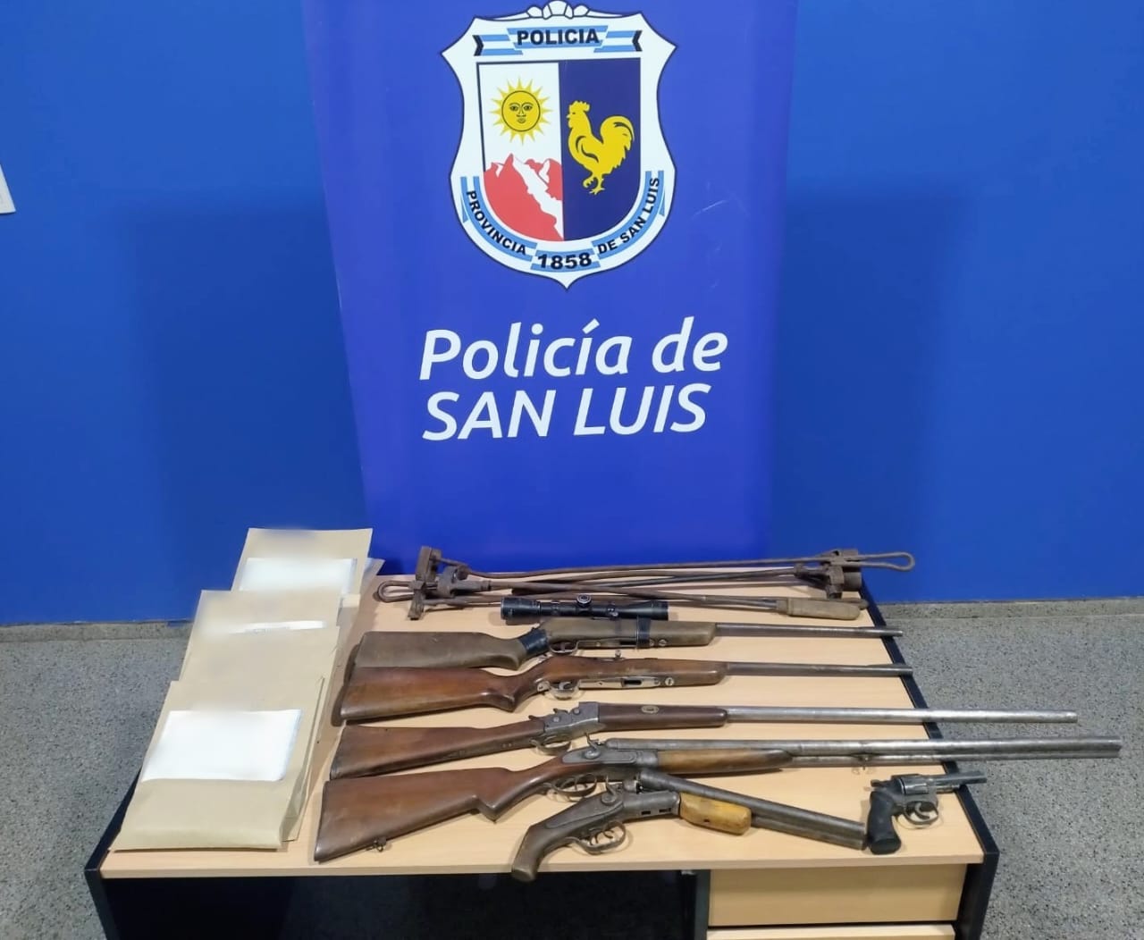 Los policías también secuestraron en ese sitio armas de fuego y municiones de distintos calibres, entre ellas carabinas, escopetas, un revólver y una mira telescópica.