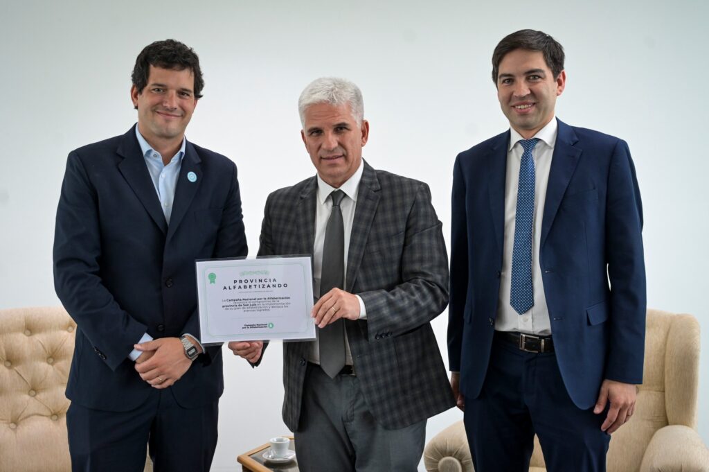 Este martes, el gobernador Claudio Poggi convocó en su despacho a un equipo de funcionarios del ministerio de Educación para presentar los resultados más significativos del Plan Provincial de Alfabetización ante el director ejecutivo de Argentinos por la Educación, Ignacio Ibarzábal. Como resultado de los avances evidentes que demuestra San Luis en los índices de alfabetización, producto de la política de Estado que implementó la actual gestión durante el 2024, la ONG nacional la distinguió bajo el reconocimiento de ‘provincia alfabetizadora’.