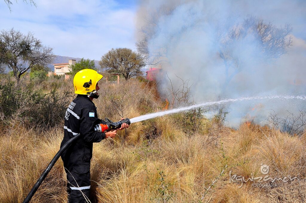 Desde el lunes 12 y por esta hora equipos de Bomberos Voluntarios y de la Policía trabajan en la contención de un foco de incendio de importante magnitud en la zona de la Estancia Las Tres Esquinas al sur de Las Chacras, límite con La Carolina.