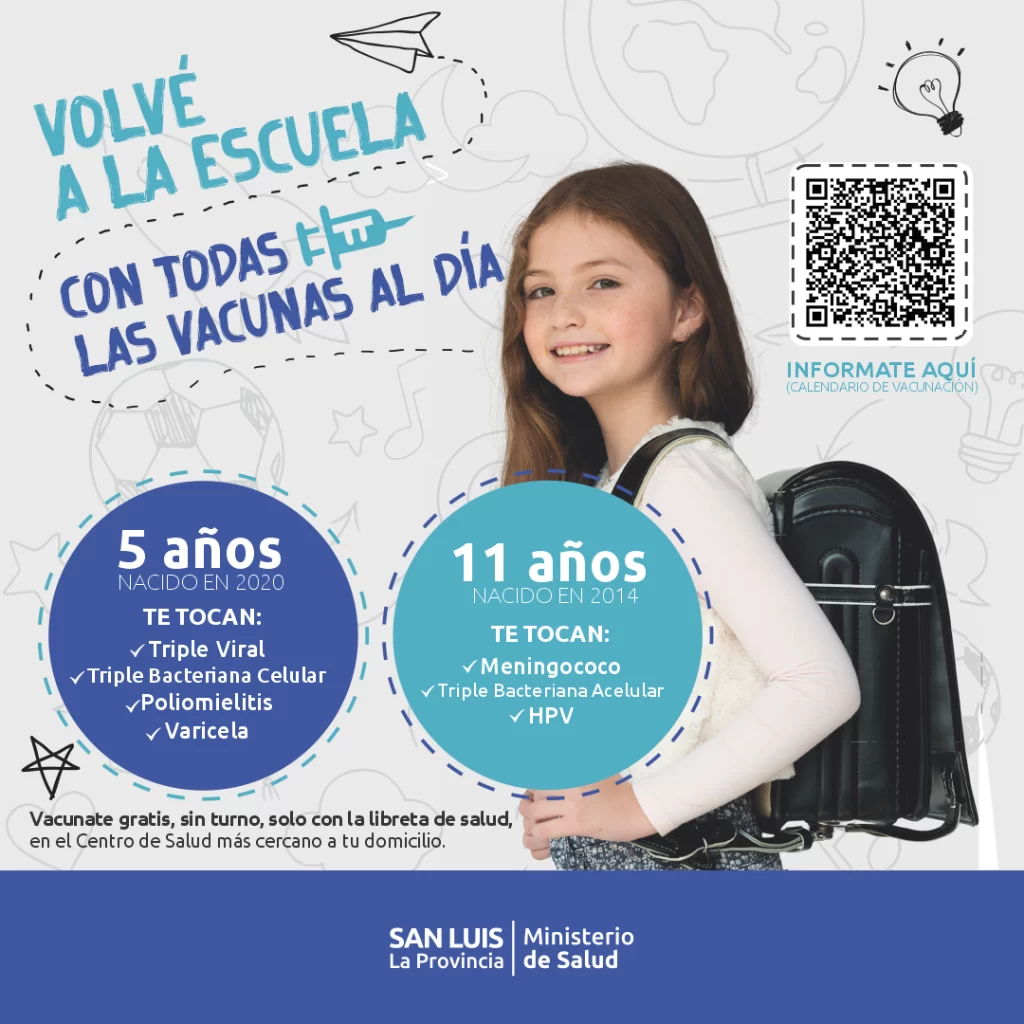El Ministerio de Salud lanzó una campaña para asegurar que niños y niñas inicien el ciclo lectivo con su esquema de vacunación completo, conforme al Calendario Nacional de Vacunación.