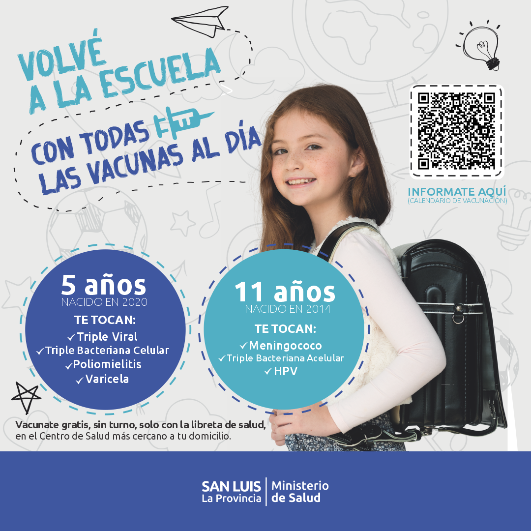 Desde el área de Inmunizaciones remarcan que vacunar a tiempo evita enfermedades y protege a toda la comunidad educativa. Para mayor información, el Ministerio de Salud ha habilitado un acceso digital con el calendario completo mediante código QR.