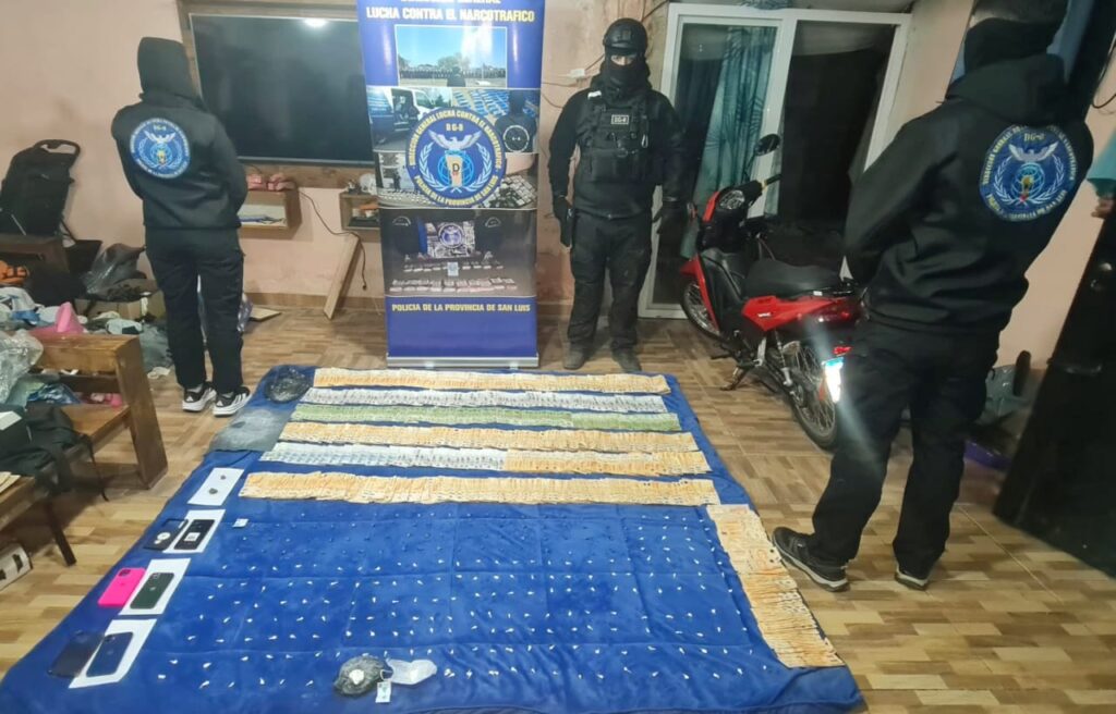 En horas de la noche, del lunes 16, personal policial de la División Lucha Contra el Narcotráfico, llevó adelante un allanamiento en la ciudad de San Luis en el marco de una investigación por infracción a la Ley Nacional N° 23.737 de Estupefacientes. La medida fue ordenada por el Juez Federal de San Luis, Dr. Juan Esteban Maqueda, y tuvo lugar en un domicilio ubicado en calle Europa 1100, lugar donde residía un hombre de 25 años vinculado a la investigación.