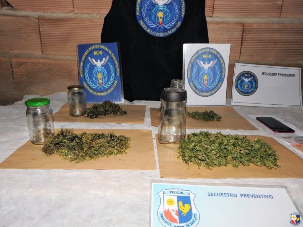 Durante el procedimiento, la Policía incautó florescencia de marihuana, una planta de cannabis de aproximadamente 1,20 metros de altura, dos teléfonos celulares y $4.200 en efectivo. Según estimaciones oficiales, la cantidad de droga secuestrada permite la elaboración de al menos 495 dosis, valuadas en $1.732.500.