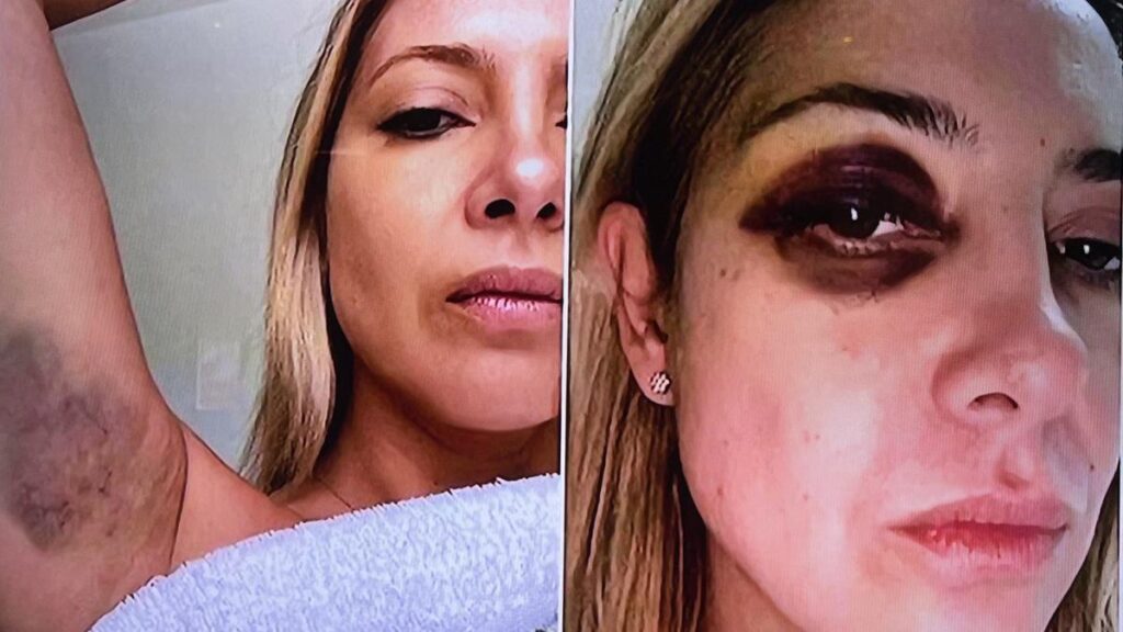 En las imágenes se ve que la ex primera dama presenta visibles moretones en un ojo y un brazo.