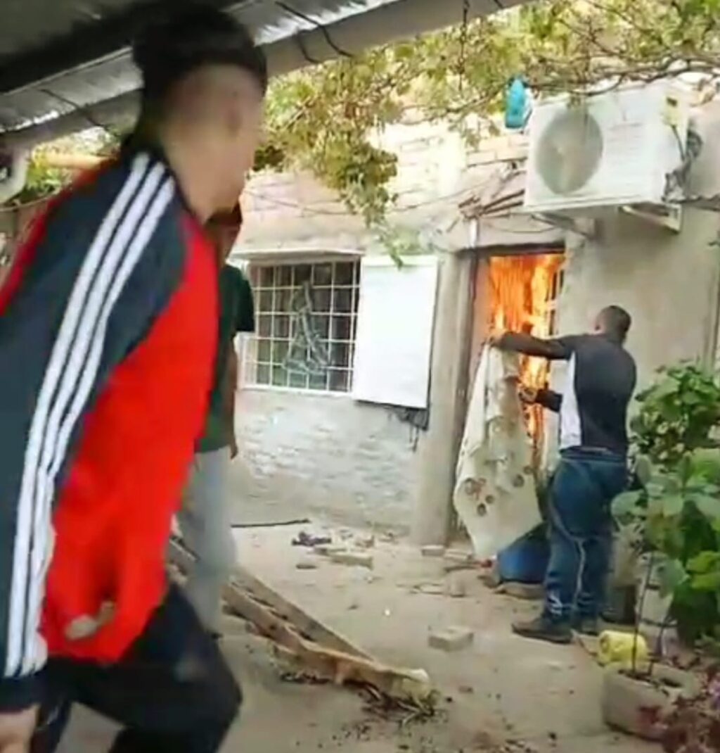 Sin embargo, minutos más tarde, y aparentemente en su trayecto hacia los domicilios, se registró un hecho de violencia en las inmediaciones de la vivienda del acusado. Según se informó, los manifestantes comenzaron a arrojar piedras, rompieron el portón de la cochera e ingresaron al inmueble, provocando daños materiales. Posteriormente, se habría arrojado pintura mezclada con nafta, lo que desencadenó un incendio en el interior de la vivienda.