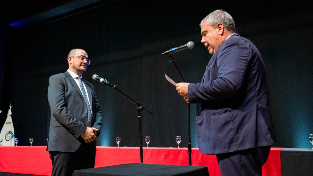 Víctor Moriñigo, le tomó el juramento a Gil, quien se comprometió a llevar adelante una gestión con ideales de modernización, transparencia, innovación, inclusión, colectiva y democrática en su periodo 2025-2028. También juraron la vicerrectora, Claudia Brusasca, los decanos y vicedecanos de siete facultades