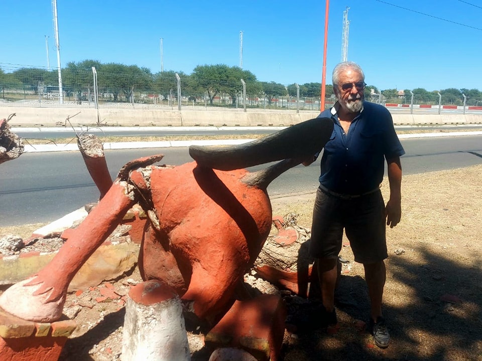 A horas del accidente que destruyo la estatua y luego de la propuesta del intendente Frontera, el reconocido escultor Sayavedra estuvo en el lugar.