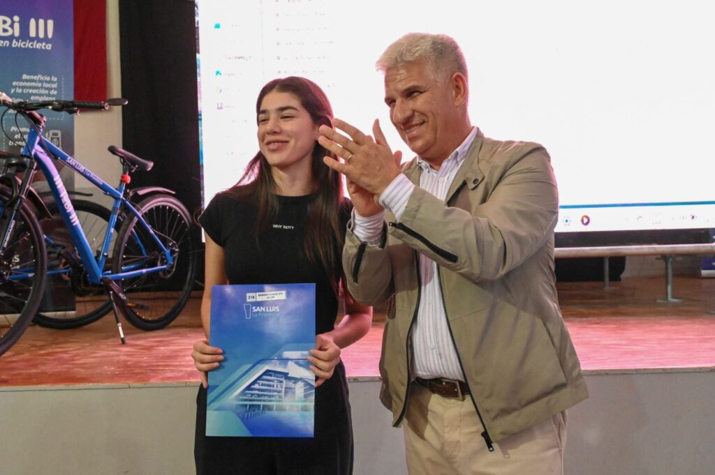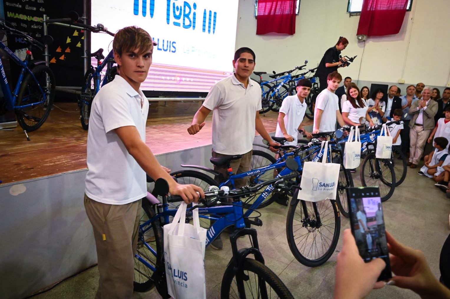 El gobernador Claudio Poggi encabezó el acto de entrega y destacó la importancia del programa, que busca promover hábitos saludables en los adolescentes. “Es un transporte económico porque no necesita nafta, ecológico porque no contamina y, además, fomenta la actividad física y la salud. También genera movimiento económico y una industria de la bicicleta, beneficiando a muchos bicicleteros de la provincia”, afirmó.