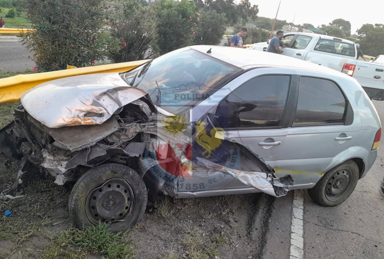 Este lunes, como parte de diversas tareas investigativas en la ciudad de San Luis, efectivos policiales de la División Lucha Contra el Narcotráfico iniciaron la persecución de un auto Fiat Palio por diferentes calles de la ciudad, la cual finalizó en avenida José Santos Ortiz antes de llegar a Riobamba, ocasión en la que el conductor del auto perdió el control del rodado e impactó contra el guardarrail, quedando detenido en la banquina izquierda.