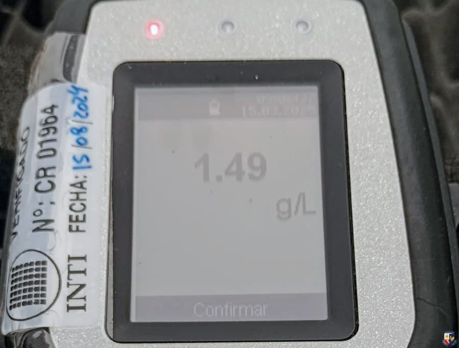 El conductor del automóvil fue sometido a un test de alcoholemia, el cual arrojó un resultado positivo de 1,49 g/l de alcohol en sangre.