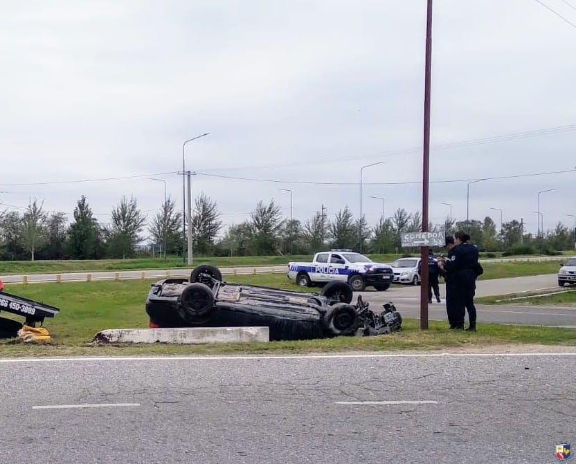 Según las primeras investigaciones, un hombre de 28 años, domiciliado en Villa del Carmen, perdió el control de su automóvil Chevrolet Aveo, impactó contra una alcantarilla y volcó, quedando con las ruedas hacia arriba.