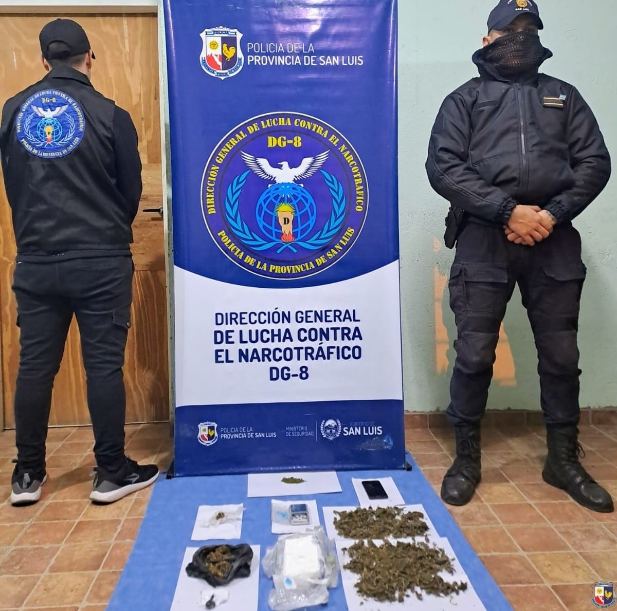 Este miércoles, efectivos de la Dirección General de Lucha Contra el Narcotráfico realizaron un importante operativo en la ciudad de Villa Mercedes, que culminó con el secuestro de una significativa cantidad de droga y la detención de un joven de 20 años.