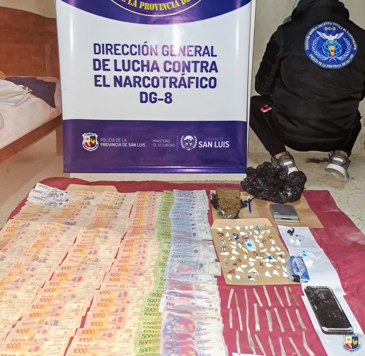 En el operativo que montó la Dirección de la Lucha contra el Narcotráfico de la Policía de San Luis, logró retener, marihuana en panes, cocaína, dinero en efectivo y detener a una mujer.