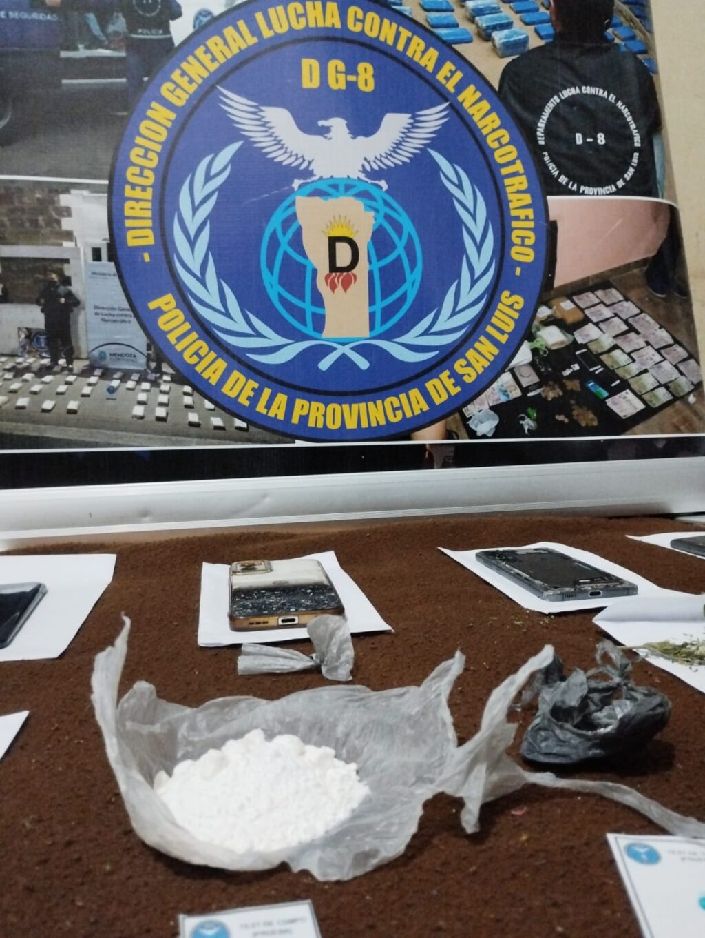 Por otro lado, este viernes por la noche, y como parte de las acciones antidrogas, la Dirección General de Lucha Contra el Narcotráfico realizó otro allanamiento en un domicilio de calle Colón al 1200, en San Luis, donde se desmanteló un centro de venta y distribución de estupefacientes.