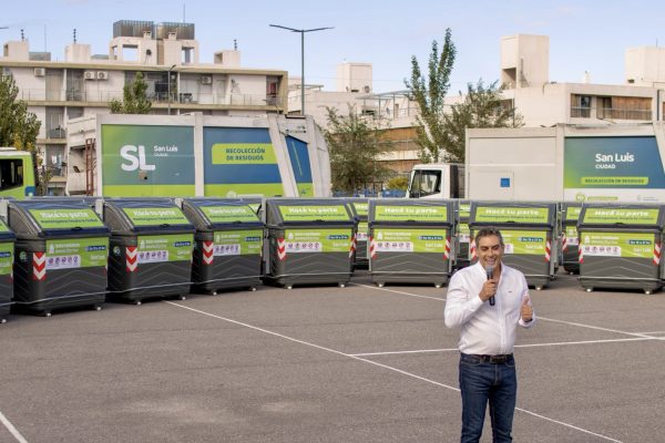 El acto se realizó este miércoles en el playón del Centro Cultural José La Vía, donde el intendente de la Ciudad de San Luis, Gastón Hissa, exhibió dos nuevos vehículos para desinfección y los primeros 40 contenedores que comenzarán a instalarse está noche en el microcentro de la capital provincial. Estuvieron el gobernador Claudio Poggi, funcionarios provinciales y municipales, concejales y representantes gremiales.