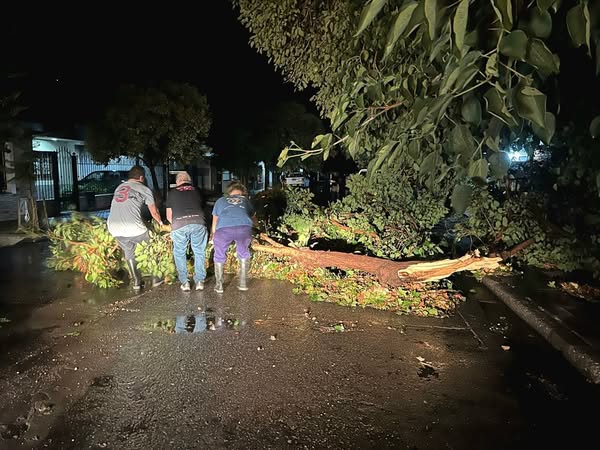 Desde la municipalidad de San Luis informaron que el Comité de Emergencia trabaja junto a Defensa Civil, Policía y distintas áreas municipales para remover árboles y postes caídos, asegurar la seguridad y asistir a los vecinos afectados.