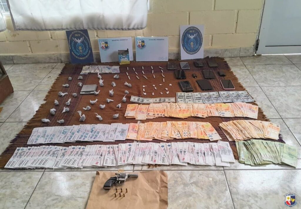 Además, en el lugar los efectivos policiales secuestraron un arma de fuego tipo revólver calibre 22 con proyectiles, 1.000 dólares estadounidenses, $1.014.450 en efectivo, teléfonos celulares, una balanza y un automóvil (el cual tiene prohibición para circular) que era utilizado para realizar delivery.