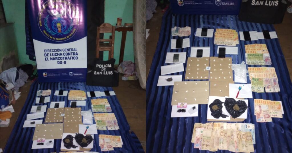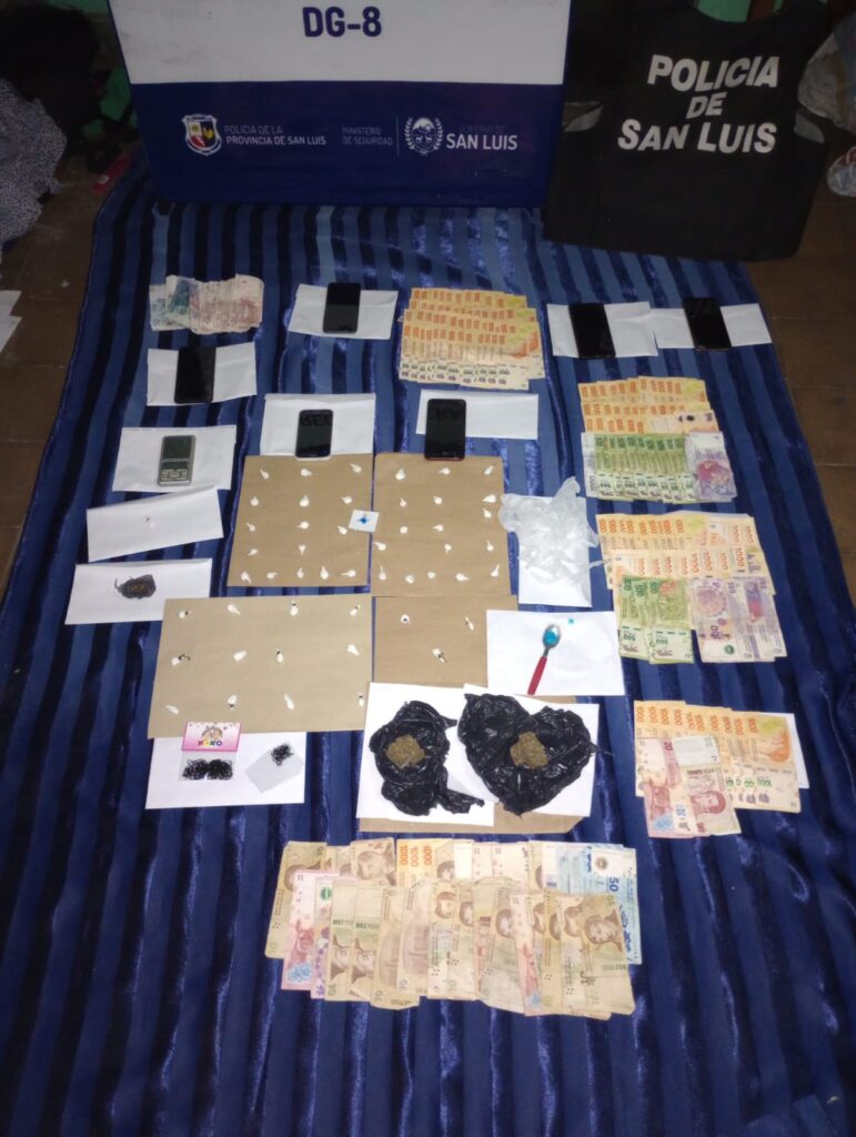 En el domicilio vinculado a la investigación, funcionaba un centro de venta de estupefacientes a consumidores del medio y del cual secuestraron según información policía “UNA BALANZA DE PRECISIÓN DIGITAL; LA SUMA PESOS CIENTO CUARENTA Y OCHO MIL CIENTO CINCUENTA ($148.150) EN MONEDA DE ACTUAL DENOMINACIÓN Y CIRCULACIÓN; RECORTES DE NYLON VARIOS; CUARENTA Y NUEVE (49) ENVOLTORIOS DE COCAINA FRACCIONADA, LISTAS PARA LA VENTA, EQUIVALENTES A 71 DOSIS, LAS QUE PUESTAS EN VENTA AL MENUDEO POSEEN UN VALOR DE PESOS DOSCIENTOS DOCE MIL ($212.000); TRES (3) ENVOLTORIOS DE MARIHUANA COMPACTA Y EN PICADURA, EQUIVALENTES A 150 DOSIS, LAS QUE PUESTAS EN VENTA AL MENUDEO POSEEN UN VALOR DE PESOS CIENTO CINCUENTA MIL ($150.000); CUARENTA Y NUEVE (49) SEMILLAS DE LA PLANTA DE LA VARIEDAD CANNABIS SATIVA LINNEO; UNA (1) CUCHARA, QUE POSEE RESTOS DE COCAINA; SEIS TELÉFONOS CELULARES.