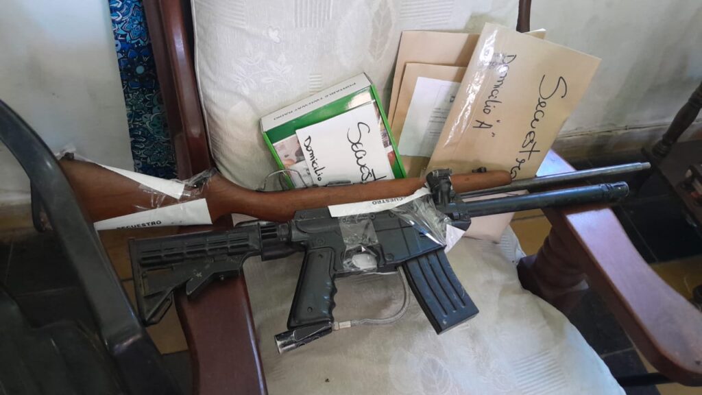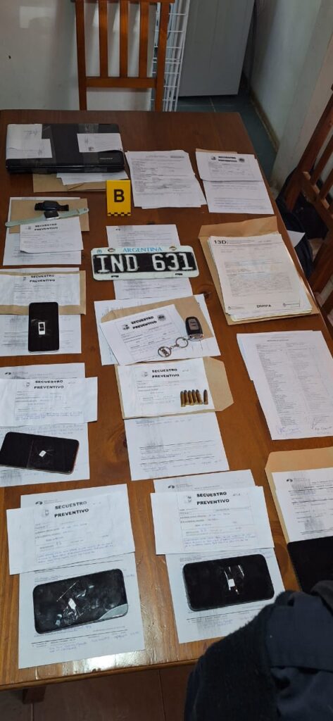 La Policía también secuestró siete autos, algunos de ellos de alta gama, y dos motocicletas, armas de guerra y de uso civil con municiones, telefonía celular, cocaína y documentación relacionada a la causa.
