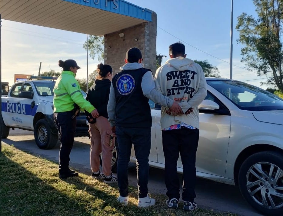 Durante un control vehicular e identificación de personas, los efectivos interceptaron un automóvil Peugeot 208 en el que viajaban un joven de 26 años y una joven de 23, ambos con domicilio en la provincia de Mendoza.