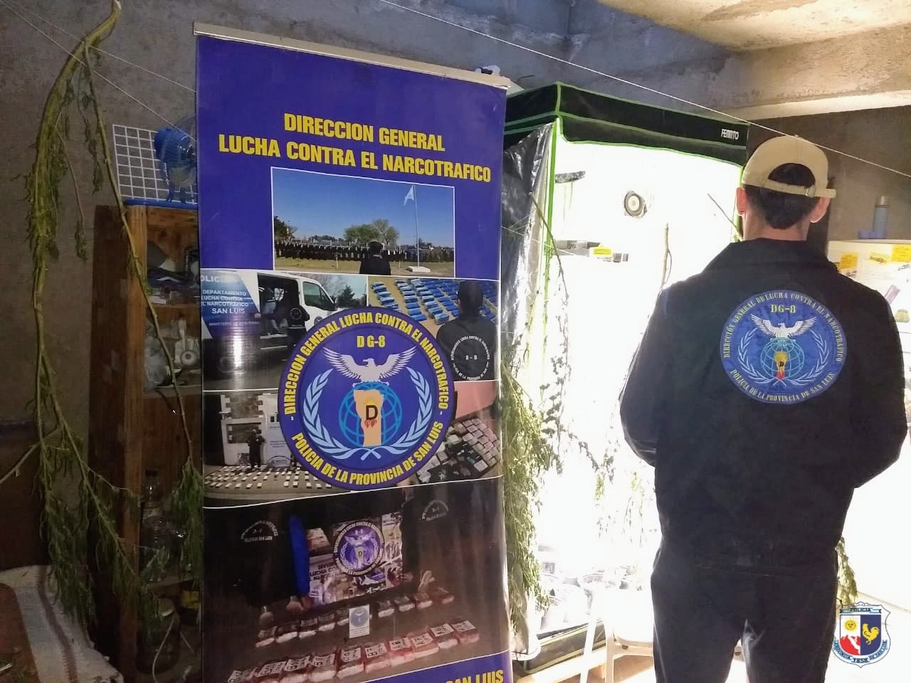 Este miércoles, como resultado de diversas tareas investigativas, personal de la Dirección General Lucha Contra el Narcotráfico realizó un allanamiento -ordenado por el Juzgado Federal de San Luis- en una vivienda de calle 11 de Agosto, en la capital puntana, donde anuló un centro de elaboración, distribución y venta de sustancia estupefaciente, el que contaba con un sofisticado método para la producción de las diferentes variedades de la planta de marihuana.