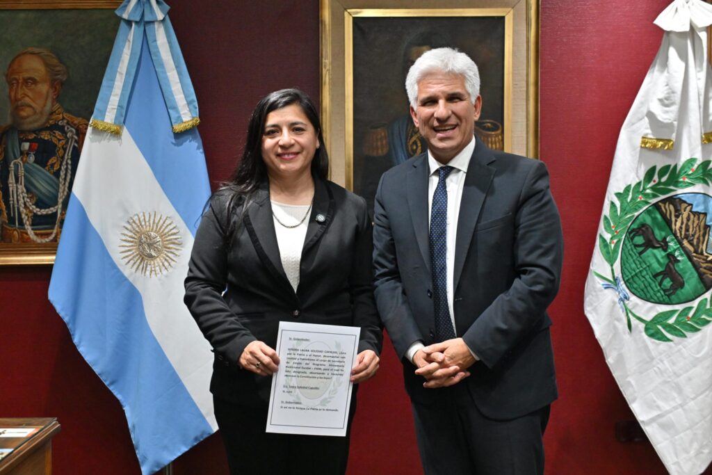 El gobernador Claudio Poggi puso en funciones en su despacho a Laura Capaldo como nueva secretaria de Estado del Programa Alimentario Nutricional Escolar (PANE). El Primer Mandatario destacó las competencias de la funcionaria para hacerse cargo del proyecto que lleva desayunos, almuerzos y meriendas a miles de estudiantes en toda la provincia.