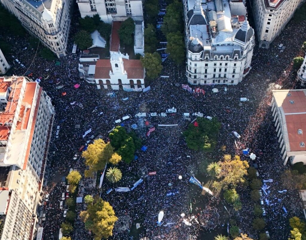 Y agregó: «No queremos que nos arrebaten nuestros sueños: nuestro futuro no les pertenece. Somos orgullosos hijos e hijas de la Universidad Argentina; somos la universidad pública, gratuita e irrestricta en el ingreso. Por eso, lucharemos, en una irrenunciable resistencia democrática y pacífica, por la educación que queremos».