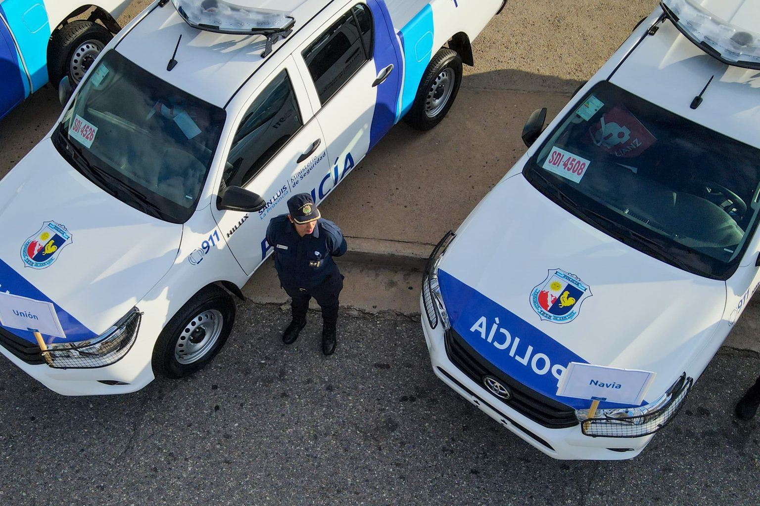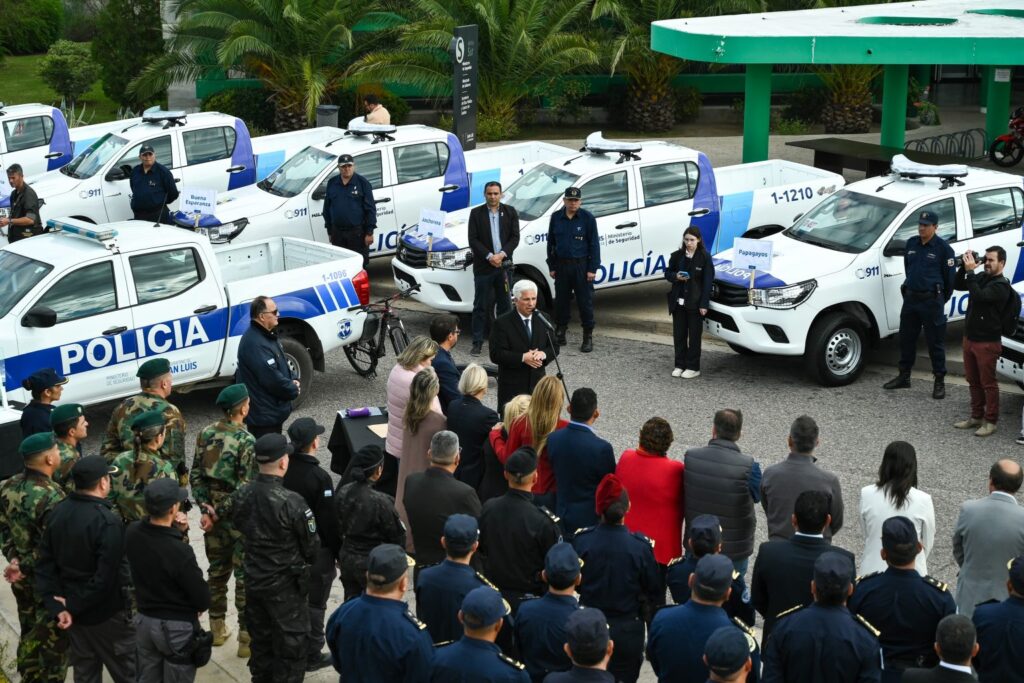 Las flamantes camionetas, en su mayoría 4×4, serán destinadas a localidades como Candelaria, Quines, San Francisco, Papagayos, Buena Esperanza, Carpintería, Villa Mercedes, Justo Daract, La Toma, entre otras. Intendentes del interior acompañaron el acto, en el que también estuvo presente el capellán policial, Aníbal Sosa, quien bendijo las unidades y pidió protección para los efectivos.
