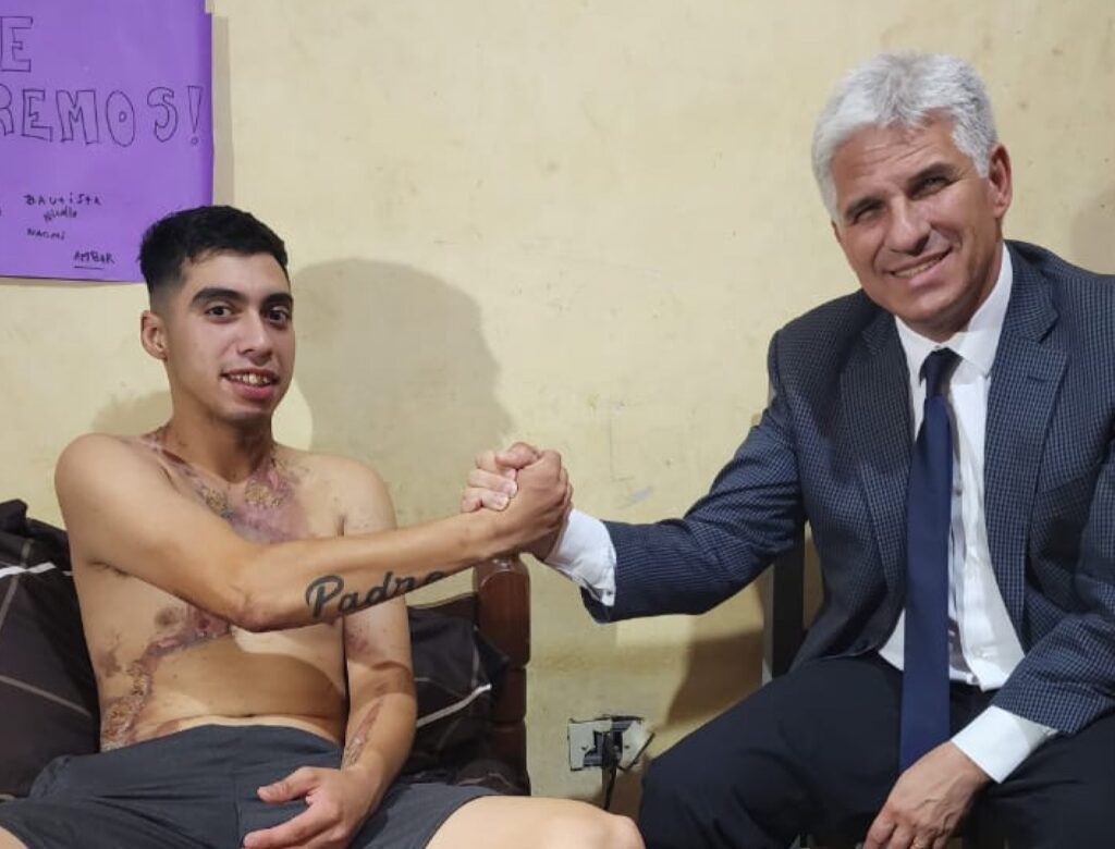 El encuentro se dio en la vivienda en donde se recupera de las lesiones que le genero la descarga eléctrica Gabriel Jonathan Berón le toco vivir un episodio que conoció todo el país y del cual mucho entiende que salvo su vida de milagro.