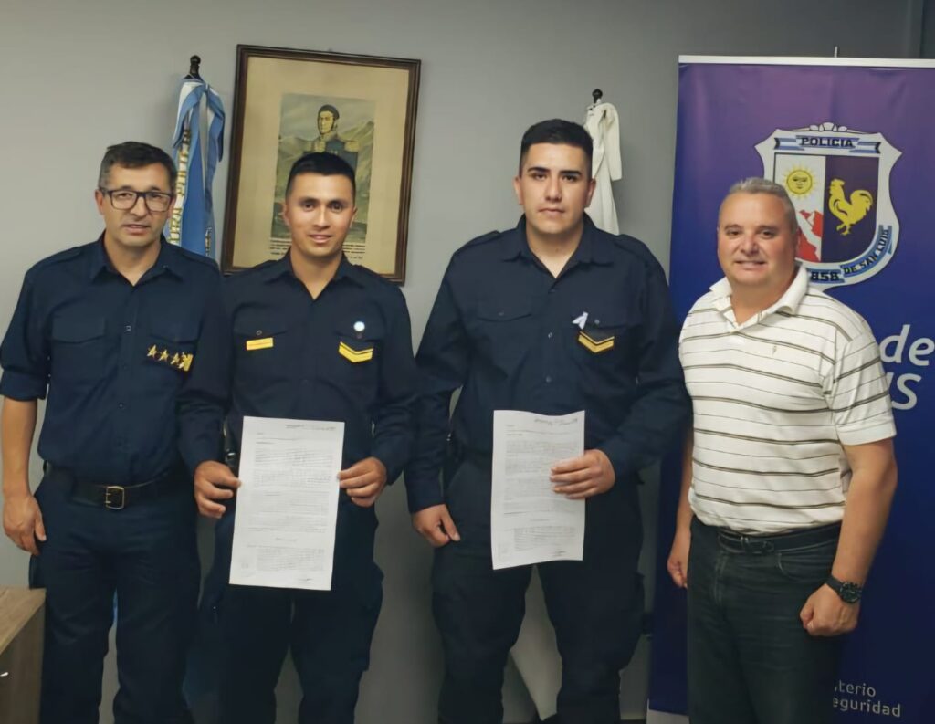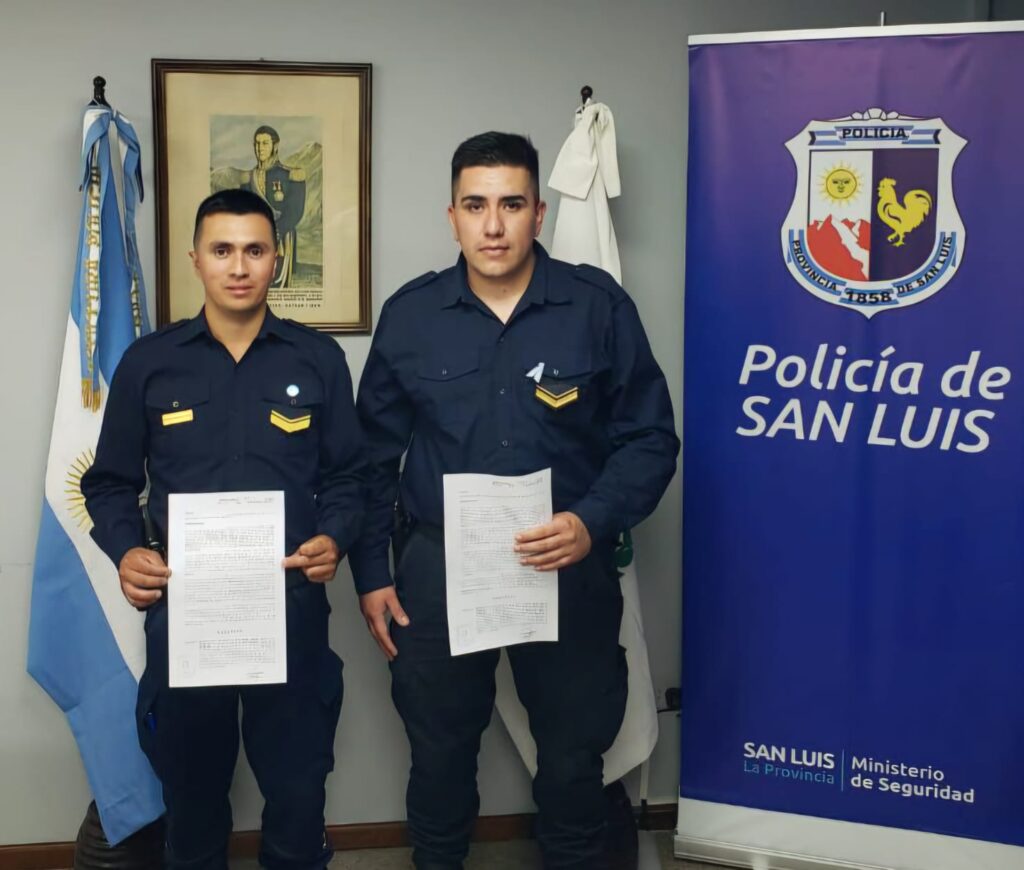 En la Jefatura Central de Policía de la Provincia de San Luis, el jefe de Policía, Comisario General (RV) Pablo Vieytes, mediante resolución, reconoció y felicitó al cabo Camilo Farid Boero y al cabo Guillermo Oscar Ortiz de la Comisaría Seccional 6° de la ciudad Capital por su accionar al salvarle la vida a una mujer de 42 años de edad mediante maniobras de reanimación cardiopulmonar (RCP).