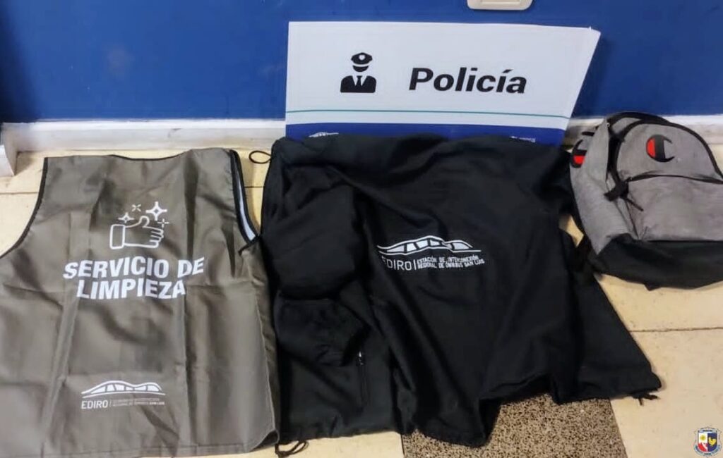 La intervención policial se originó a raíz de la denuncia de una mujer de 45 años, trabajadora de limpieza en la Estación de Interconexión Regional de Ómnibus (EDIRO), quien manifestó que mientras cumplía tareas en el edificio, un sujeto ingresó a un cuarto y sustrajo una mochila que contenía diversos elementos personales y prendas laborales.