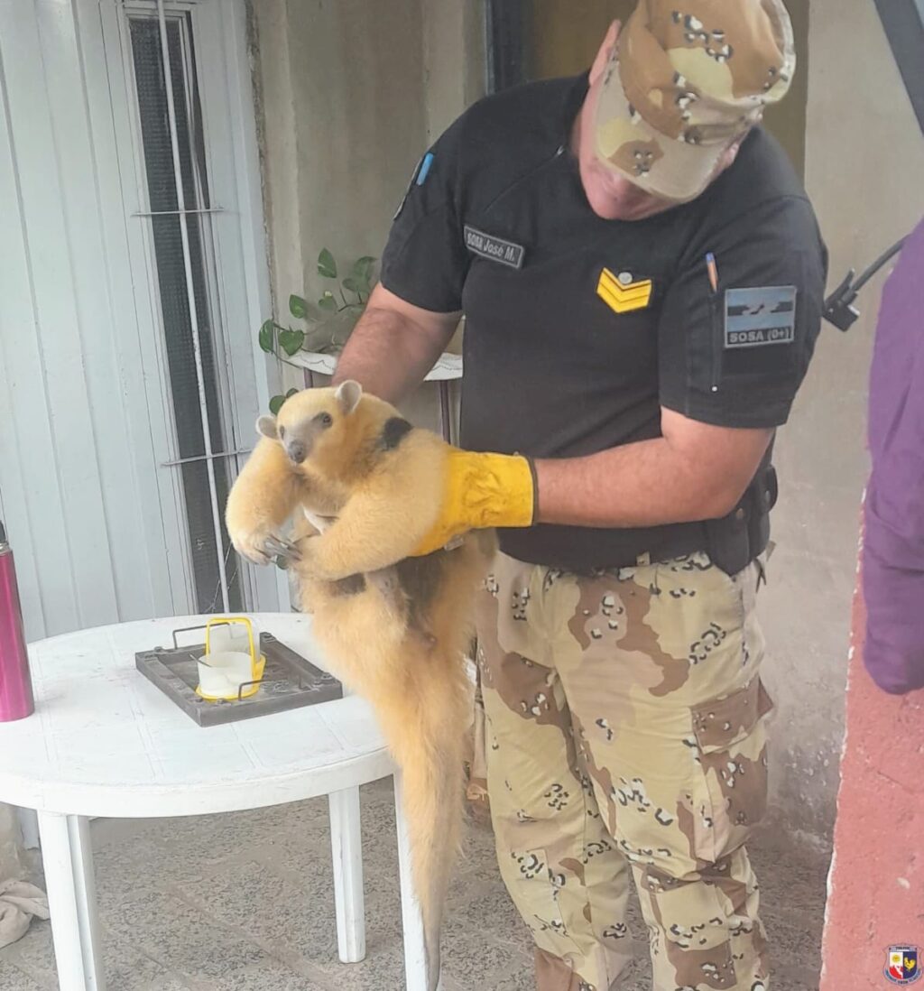 El animal fue descubierto en un domicilio ubicado en la calle Dr. Frattaroli, en el barrio Las Quintas. Según informó la propietaria, el oso melero intentaba trepar por una ventana, lo que motivó su llamado a la Policía.