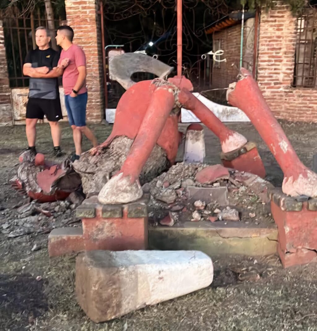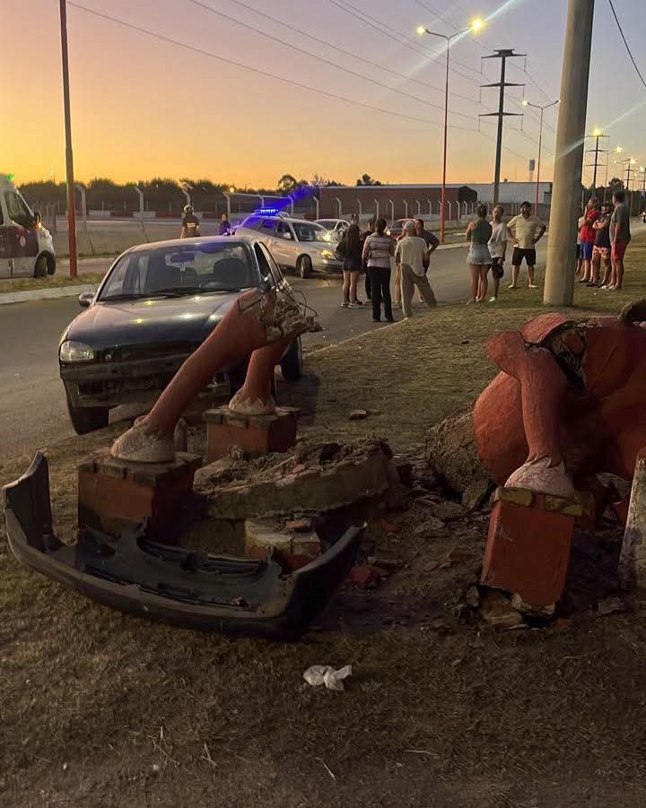 Este miércoles 25 en horas de la tarde, luego de una mala maniobra que involucró a dos autonomistas, uno de ellos terminó impactando con su auto en la estatua que la dejó totalmente destruida.