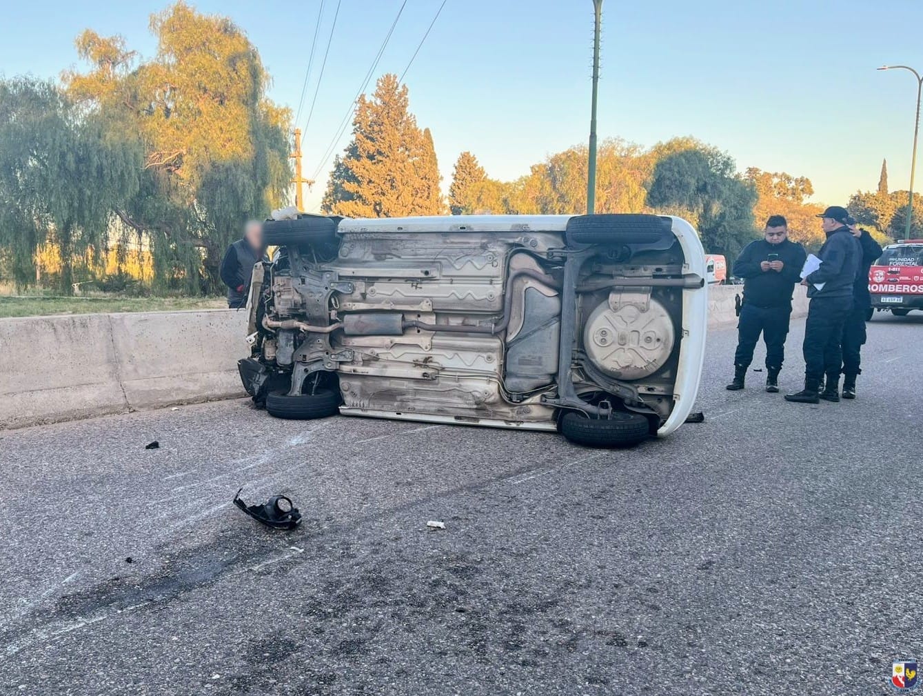 De acuerdo al testimonio del conductor, en ese sector de la avenida intentó sobrepasar a otro vehículo que circulaba en la misma dirección y tocó el muro de contención del cantero central, lo que provocó que perdiera el control del automóvil y terminara volcando.