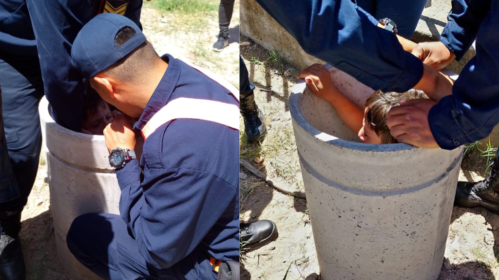 Personal de la Policía de la Provincia asistió en un rescate a un menor de 7 años que se encontraba atascado en un tubo de cemento. El hecho ocurrió en un estacionamiento ubicado en la intersección de avenida Lafinur y calle Junín.