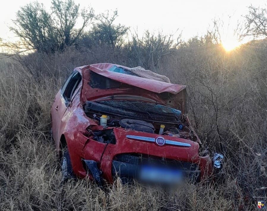 En ese sector, una mujer de 53 años de apellido Macías -con domicilio en la localidad de Quines- circulaba en un auto Fiat Palio de sur a norte y por razones que se tratan de establecer perdió el control del vehículo, el cual salió de la carpeta asfáltica y dio unos tumbos, quedando volcado en la banquina derecha de acuerdo a la circulación.