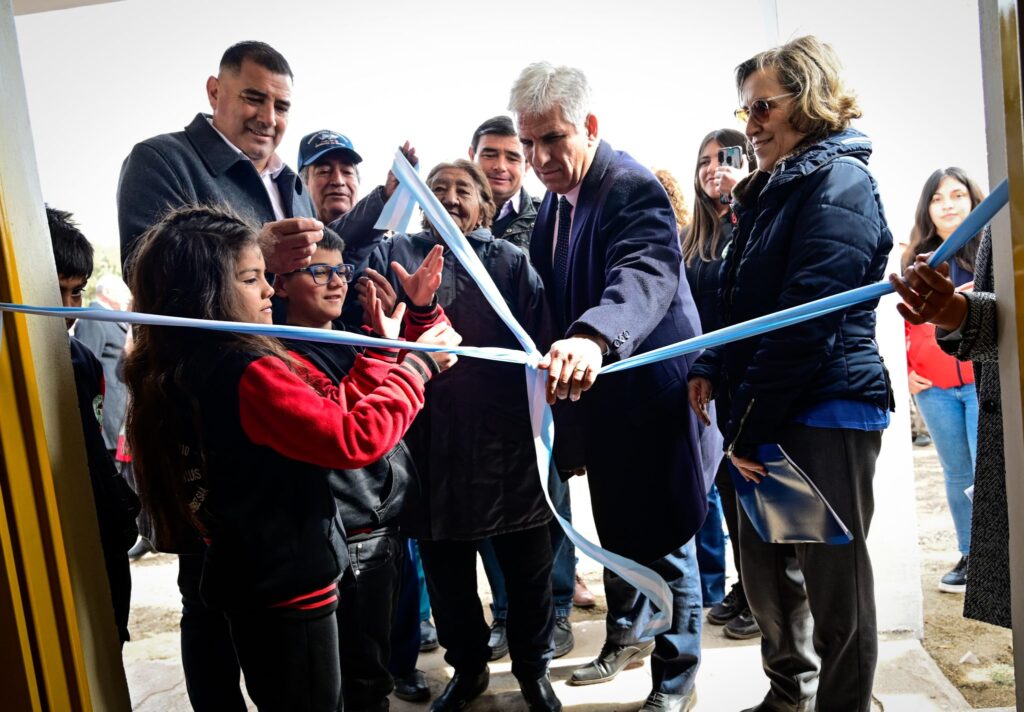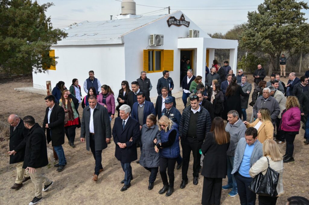 Luego, el gobernador Poggi, los vecinos y los estudiantes de la Escuela N°310 ‘Ricardo Rodríguez Saá’ de El Barrial, que funciona en el mismo predio, a la vera de la ruta N°146, realizaron el descubrimiento de una placa, el corte de cinta y un recorrido por el lugar.