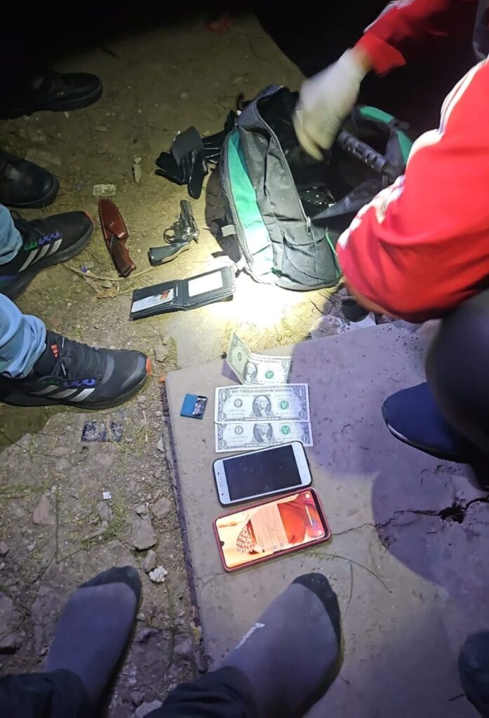 Los elementos secuestrados en el allanamiento fueron un par de zapatilla de color blanca con vivos de color azul. dos pantalones jogging de color negro, una campera de color negra, un cuellito de color gris con negro, joyas varias, tres celulares, binoculares con su respectivo estuche, una linterna de color negra, una linterna led, dos pares de guantes de color negro, un revolver calibre 22 de color cromado con las cachas de color negro, dos juegos de llaves, una billetera con documentación varia, un GPS con su respectiva caja, un cuchillo con cabo de madera con su vaina de color marrón, una mochila de color negra con verde, dos relojes pulseras, tres billetes de 1 dólar, dos llaves tipo sevillana de color negro y un documento de identidad.