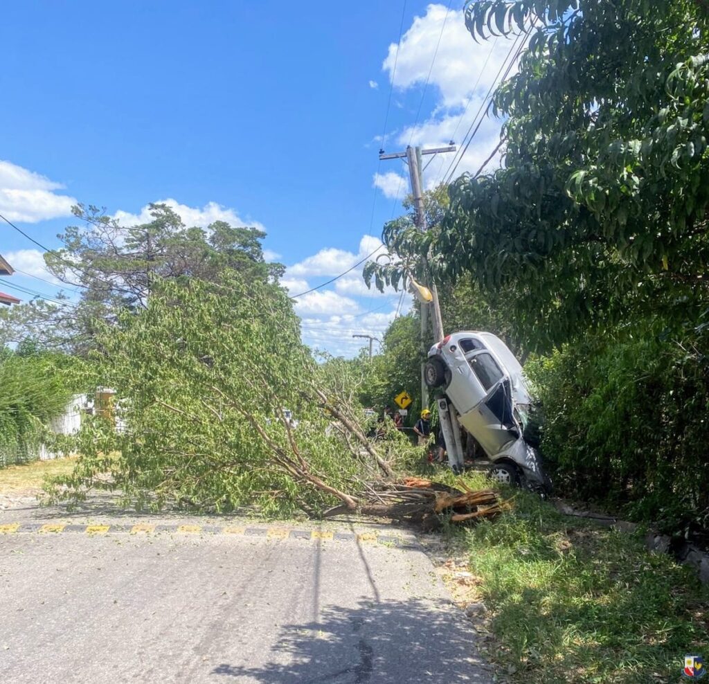 Según las primeras averiguaciones policiales, una mujer de 55 años, que circulaba en un Chevrolet Corsa junto a su hijo menor de edad, perdió el control del vehículo por razones que aún se investigan. Como consecuencia, impactó contra un árbol, el cual fue derribado por la colisión, y el automóvil quedó en posición vertical sobre postes del tendido eléctrico.
