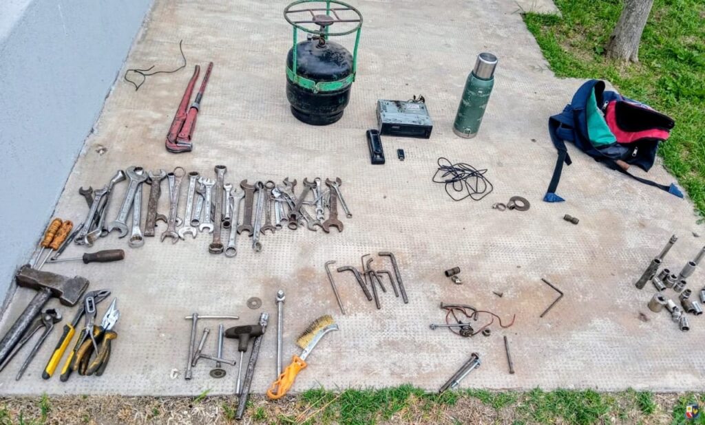 Al realizar un recorrido, los efectivos lograron divisar en inmediaciones de las calles San Lorenzo y Entre Ríos a ambos adolescentes, quienes trataron de darse a la fuga mientras se despojaban de distintos elementos, sobre todo herramientas.