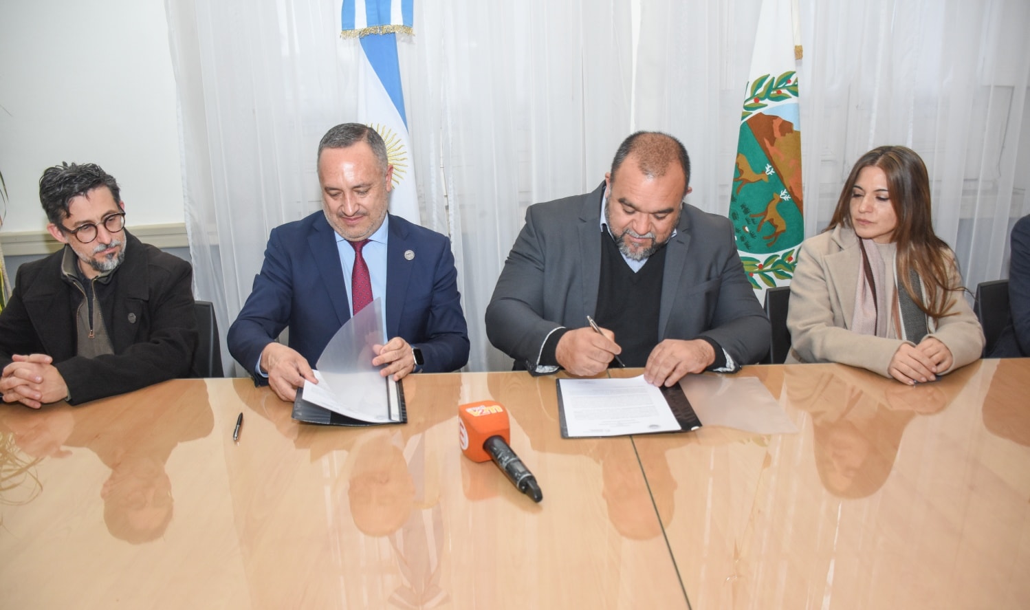 El intendente de Villa Mercedes, Maxi Frontera, junto al rector de la Universidad Nacional de Villa Mercedes (UNViMe), Dr. Marcelo Sosa, firmaron un acuerdo de cooperación que permitirá a estudiantes de las distintas Escuelas de la institución realizar prácticas profesionales en dependencias municipales.