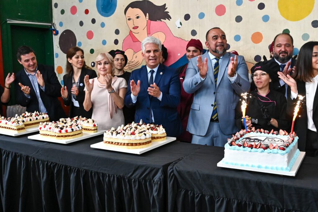 En un gesto que simbolizó la unión y la celebración colectiva, las autoridades presentes, encabezadas por el gobernador Claudio Poggi y el intendente Maximiliano Frontera, tuvieron el honor de cortar una imponente torta, cuidadosamente elaborada por la Universidad Provincial de Oficios. Este dulce monumento a la creatividad y el esfuerzo compartido fue distribuido entre alumnos, familias y el resto del público presente, extendiendo el sabor de la festividad a cada rincón del evento.