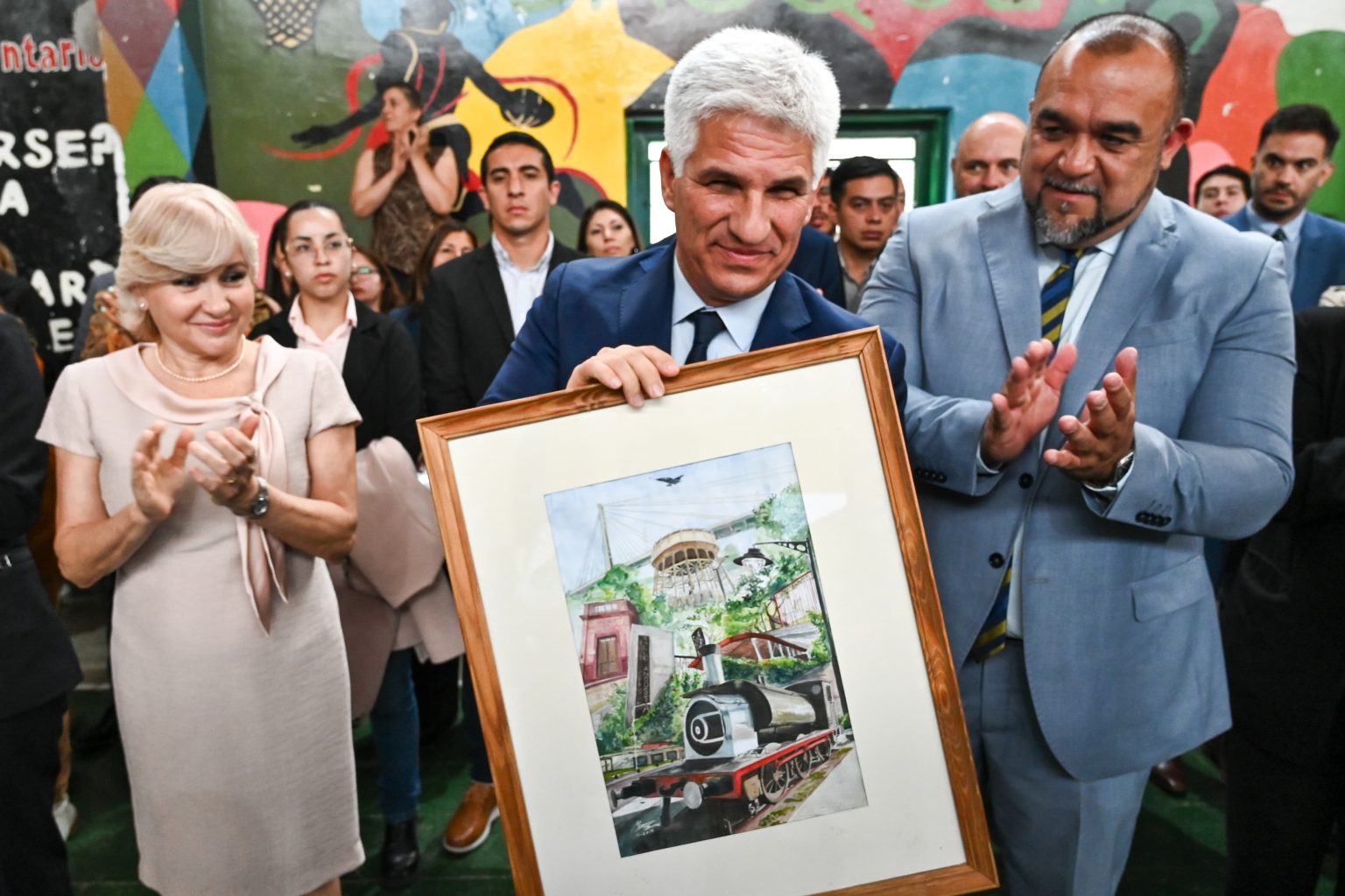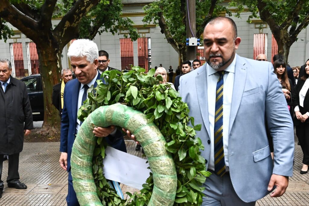 El momento central tuvo lugar en el salón de usos múltiples del colegio “Benito Juárez”, luego de ser depositadas ofrendas florales en la plaza Lafinur, manzana fundacional de la ciudad. Ya en el salón, tras la entonación del Himno Nacional Argentino, se proyectó un video institucional que repasó los hitos más significativos de la historia de Villa Mercedes.