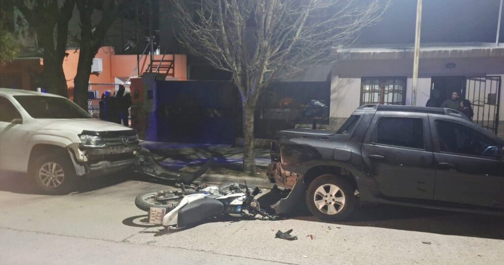 La intervención policial se originó a raíz de un llamado al Centro de Operaciones Policiales, que alertó sobre un siniestro vial con personas heridas. Al llegar al lugar, los efectivos constataron que una motocicleta, conducida por un hombre cuya identidad se desconocía en ese momento, había impactado violentamente contra dos vehículos tipo pick-up: una Volkswagen Amarok y una Renault Duster Oroch, ambas estacionadas correctamente sobre la vía pública.