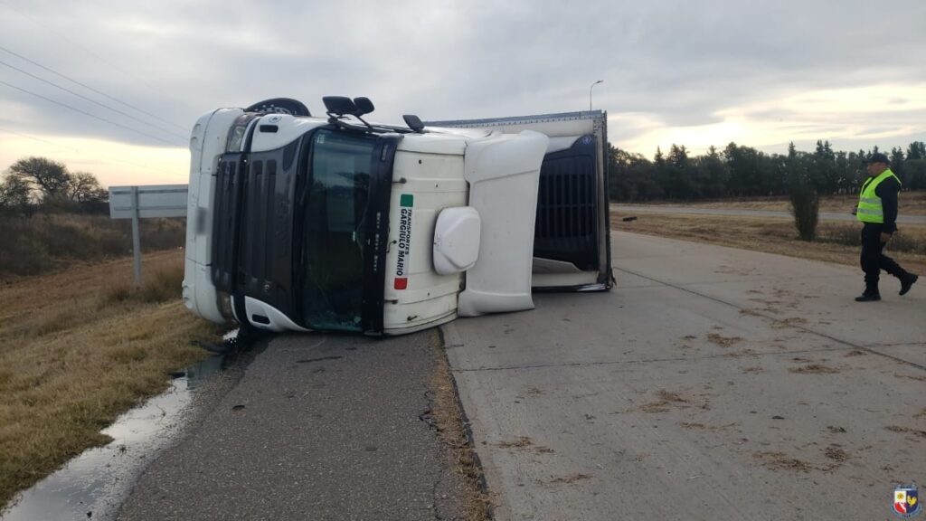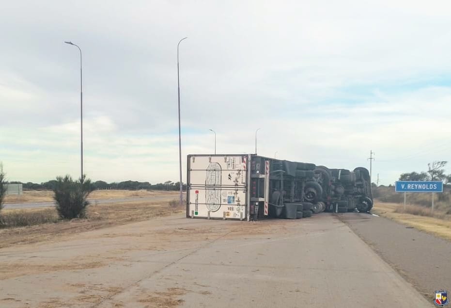 Según las averiguaciones policiales, un hombre de 33 años circulaba de oeste a este al mando de un camión marca Scania con semirremolque, cuando perdió el control del vehículo tras pisar la banquina. Como consecuencia, colisionó con varios postes de iluminación pública ubicados en el cantero central y terminó volcando, quedando atravesado sobre la calzada.