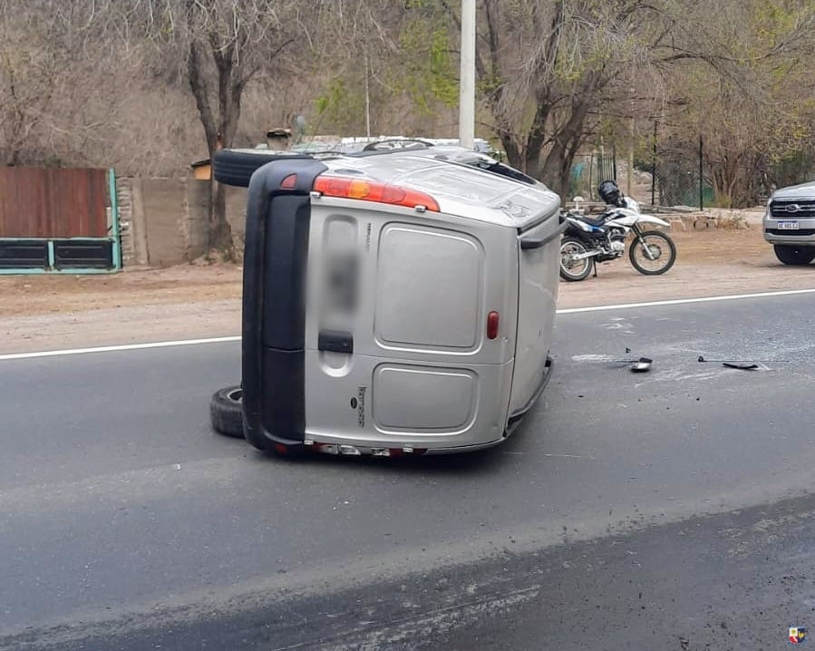 Ante esa situación, el conductor realizó una maniobra girando el volante hacia la izquierda, por lo que perdió el control del vehículo y luego volcó, quedando de costado sobre la carpeta asfáltica.